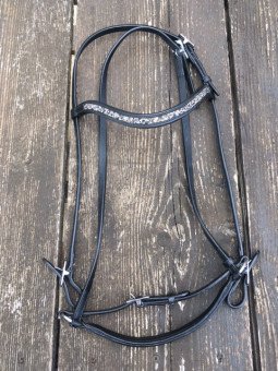 Prix 54,95 €Bridon western en cuir avec jolies décorations et surpîqures blanches contractées